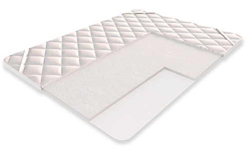 Тонкий наматрасник из хлопкового жаккарда на шерстяном полотне с согревающим эффектом. Служит хорошей гигиенической защитой матраса. По бокам наматрасника расположены резинки для удобства фиксации на матрасе.