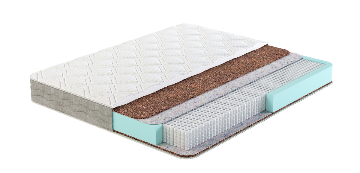 В качестве наполнителя используется натуральный материал — латексированная кокосовая койра, обеспечивающая надежную поддержку и заботу о здоровье позвоночника. Кокос придает дополнительную жесткость спальному месту, отличается прочностью и долговечностью, хорошо пропускает воздух и обладает антибактериальным эффектом. Матрас поможет Вам сохранить здоровый позвоночник и красивую осанку.