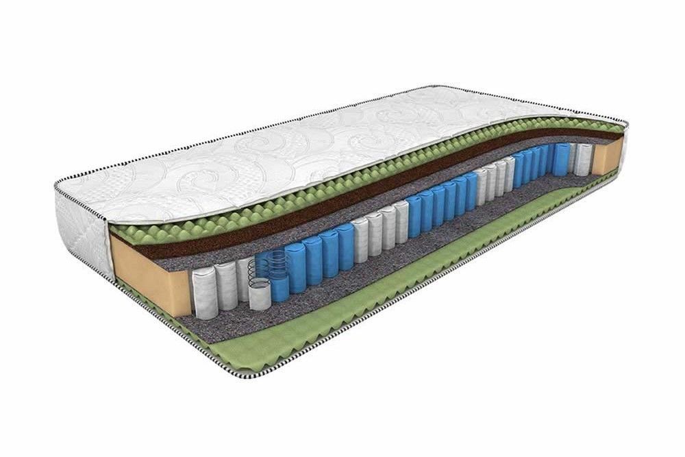 Двусторонний ортопедический матрас Mix Foam Smart Zone на зональном блоке независимых пружин. Пружинный блок имеет пять зон жесткости: усиленные пружины используются для дополнительной поддержки тазобедренной и плечевой областей тела спящего.