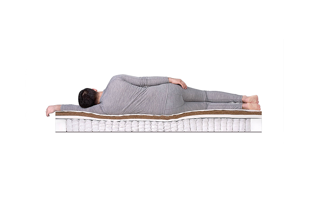 Сторона Б: всё наоборот – внутренний наполнитель – натуральный латекс, отвечающий за анатомичность матраса, внешний наполнитель – латексированная кокосовая койра, придающая конструкции лёгкие нотки жёсткости.